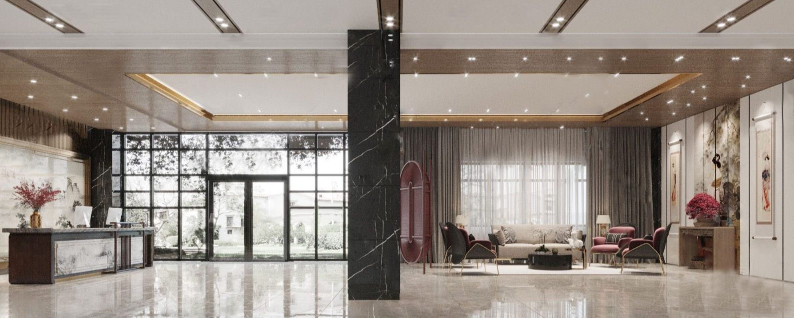从挑高的大堂到静谧的走廊,再到私密的影音室与套房,设计既保留了东方美学中的对称、留白与意境营造,又融入了现代极简的利落线条与光影艺术。无论是接待区的水墨元素、走廊的艺术装置,还是影音室的星空顶与卧室的悬浮式设计,都在低调内敛中传递出高阶审美,实现了功能与美学的统一,为圈层社交与私享体验打造出兼具格调与温度的专属场域。