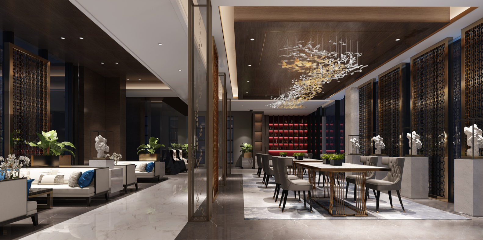 以沉稳的深棕、雅黑、米白为基底,搭配金色线条与金属元素提升精致感,在空间中运用大理石、实木、皮革等奢质材料,结合利落的几何线条与温润的软装细节,营造出兼具仪式感与舒适度的体验。