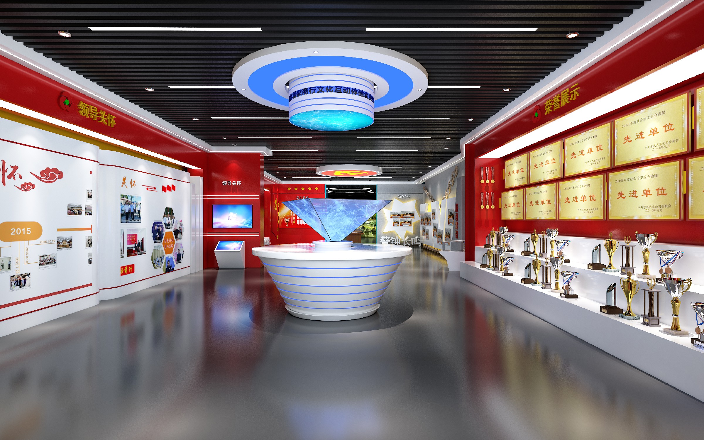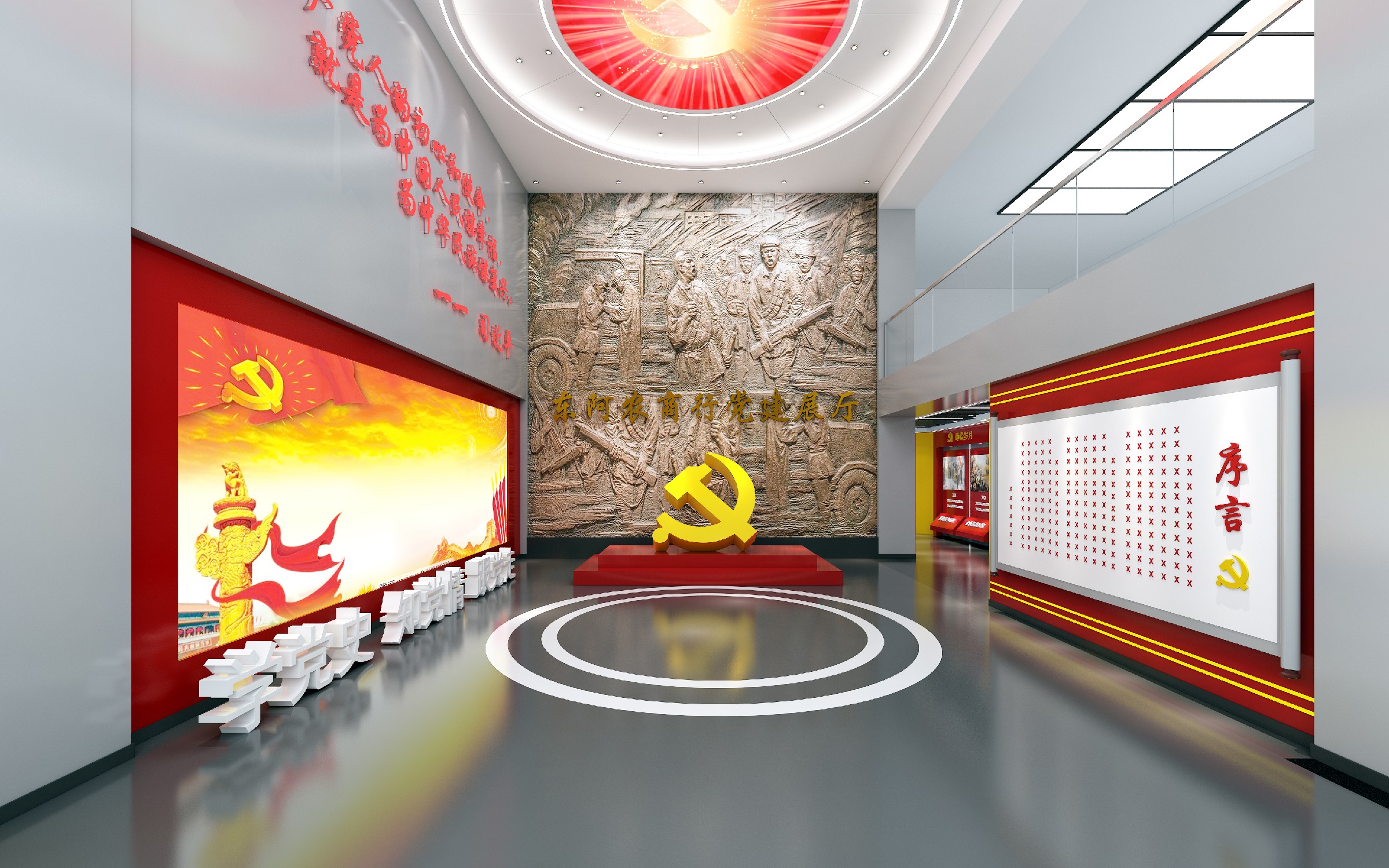 我们以 “党建引领、文化铸魂” 为核心,为东阿农商银行打造了集沉浸式教育、互动式体验、可视化展示于一体的党建展厅。从序厅的震撼开篇到 “峥嵘岁月”“红色灯塔” 等主题展区的递进叙事,再到数字化互动体验区的创新呈现,我们将红色文化与现代展陈技术深度融合,既还原了党的光辉历程,又结合农商行特色打造了专属的文化阵地,让每一处空间都成为传递信仰、凝聚力量的生动课堂。