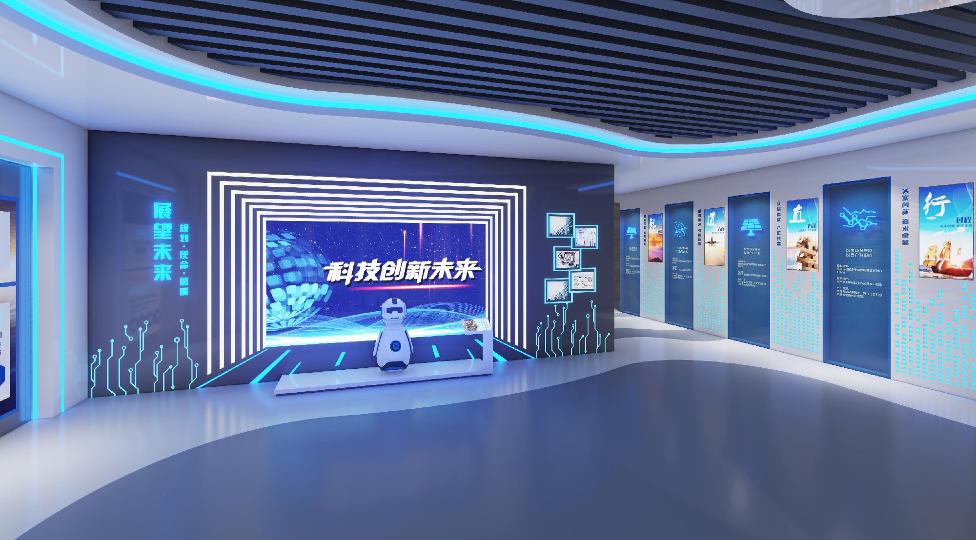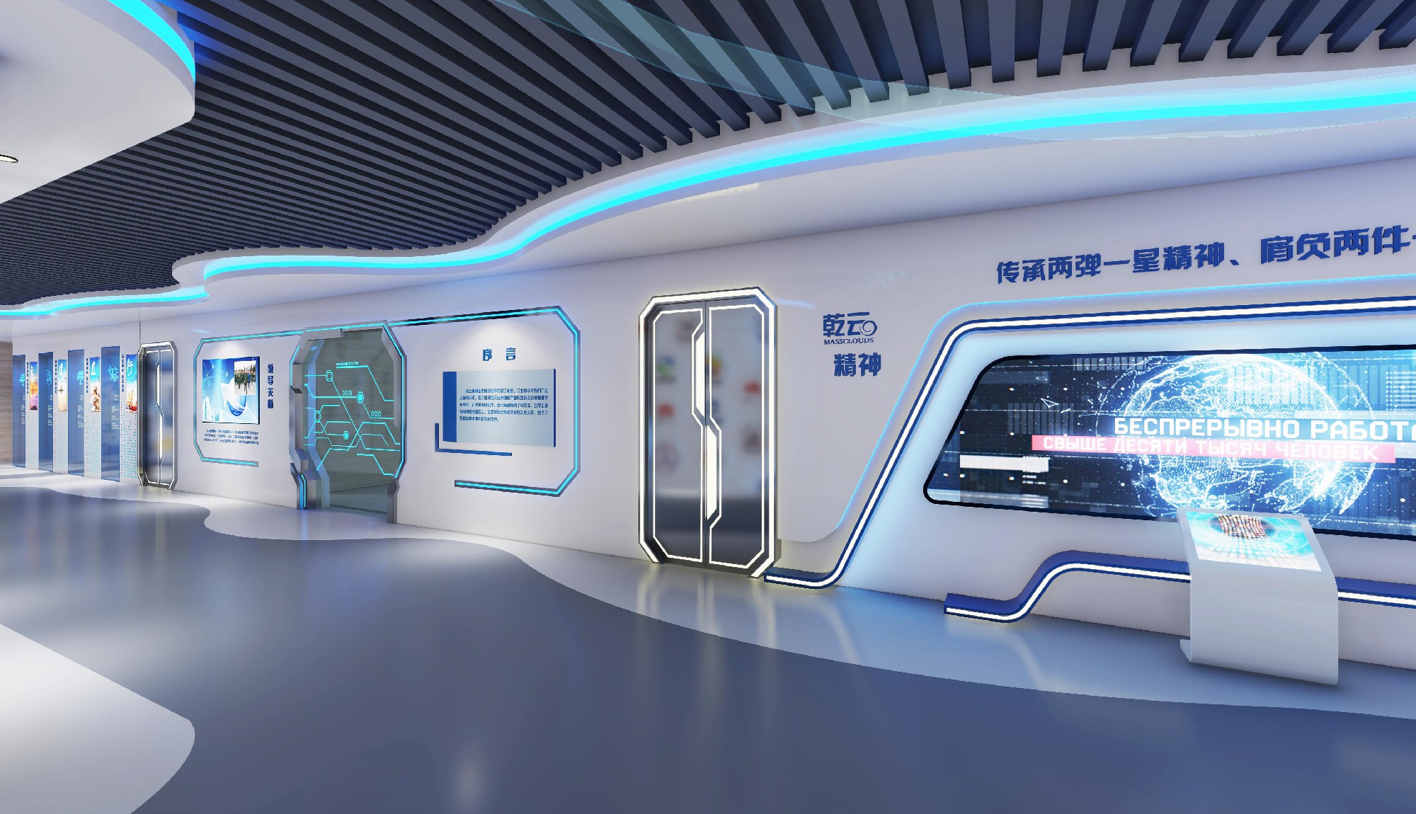 我们以科技内核为锚点,将工业级技术与前沿材料、创新结构造型与科技展品、高新媒介技术深度融合,构建兼具形式美感与格调质感的沉浸式空间艺术。设计打破传统展厅边界,广泛运用现代电脑多媒体、声像大屏、激光造型等核心技术,以数字化语言重构空间表达,既塑造出科技感鲜明、风格独特的高新展示形态,又深度沉淀乾云科技的品牌基因与文化底蕴,让技术与艺术在空间中实现共生共荣。