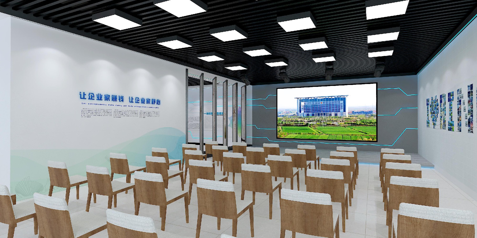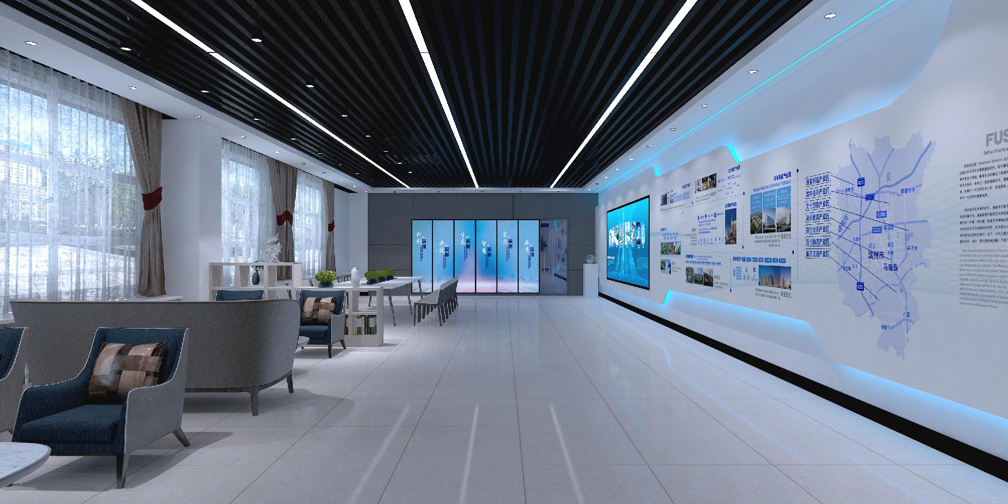 滨城区产业会客厅,从整体布局到细节雕琢,无不彰显我们对品质与创新的不懈追求。步入展厅,现代科技感扑面而来,简洁流畅的空间线条,搭配精心设计的灯光效果,营造出既专业又富有活力的氛围。在这里,每一面墙都是故事的载体,每一件展品都能“开口说话”,我们运用先进的展示技术与创意手法,将企业的发展历程、核心技术与未来愿景完美融合,让参观者在沉浸式的体验中,深刻感受企业的魅力与潜力。